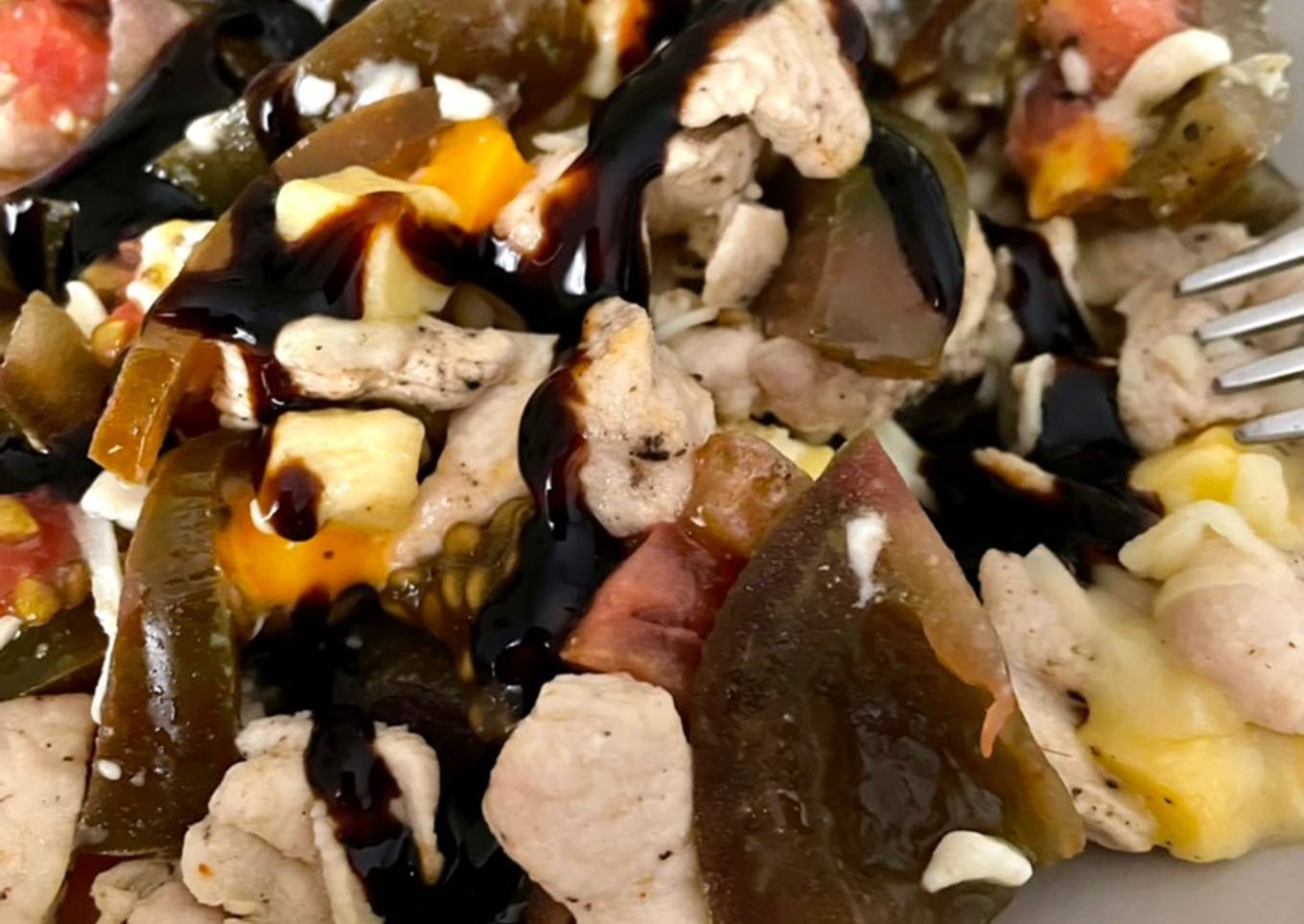 Ensalada de tomate con pollo y queso