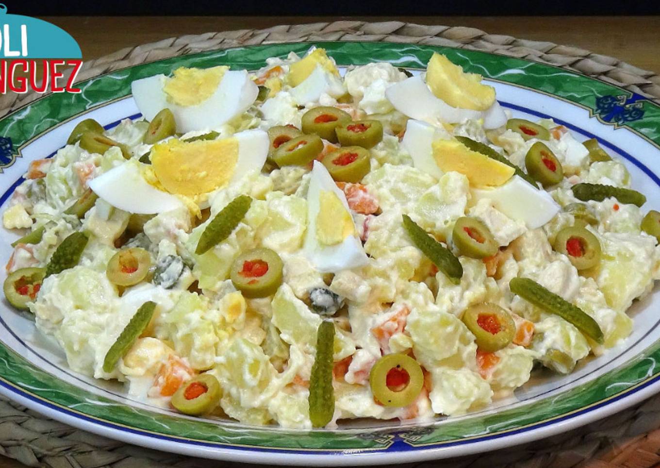 Ensaladilla de patatas con pollo y mayonesa sin huevo (Lactonesa)