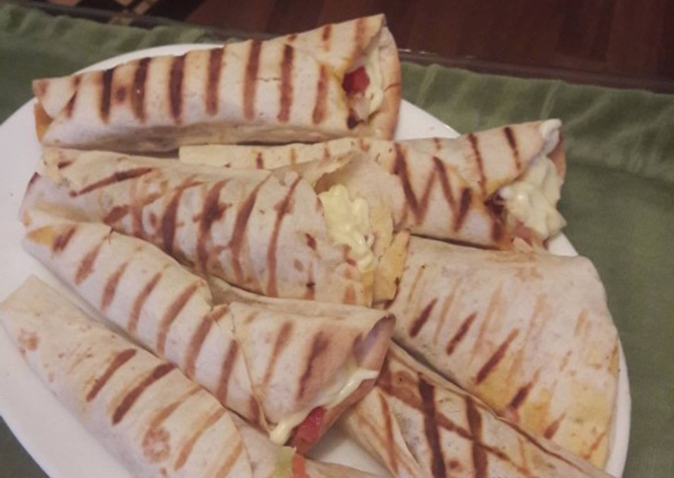 - Del pollo y los pimientos y así con todas las fajitas, enrollamos y por último cogemos una sartén para calentar y tostar un poco las fajitas por un lado y por el otro y listo para comer.