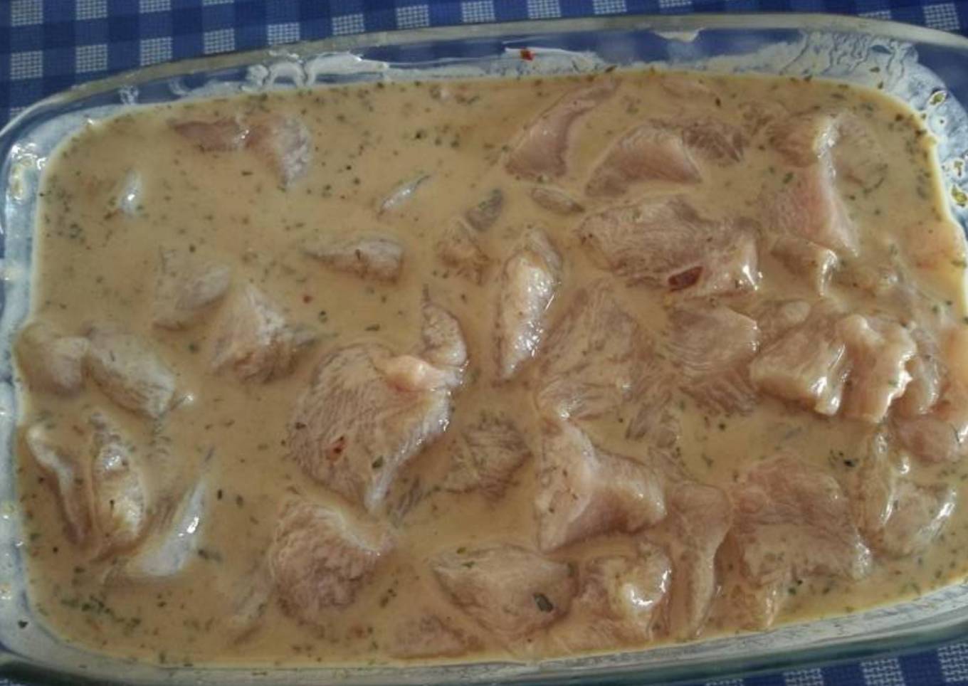 - Para macerarlo mezclamos los huevos batidos, el yogurt, la soja, el pimentón, el ajo, la cayena y la sal. Añadimos el pollo y mezclamos y dejamos 1 hora asi mezclado.