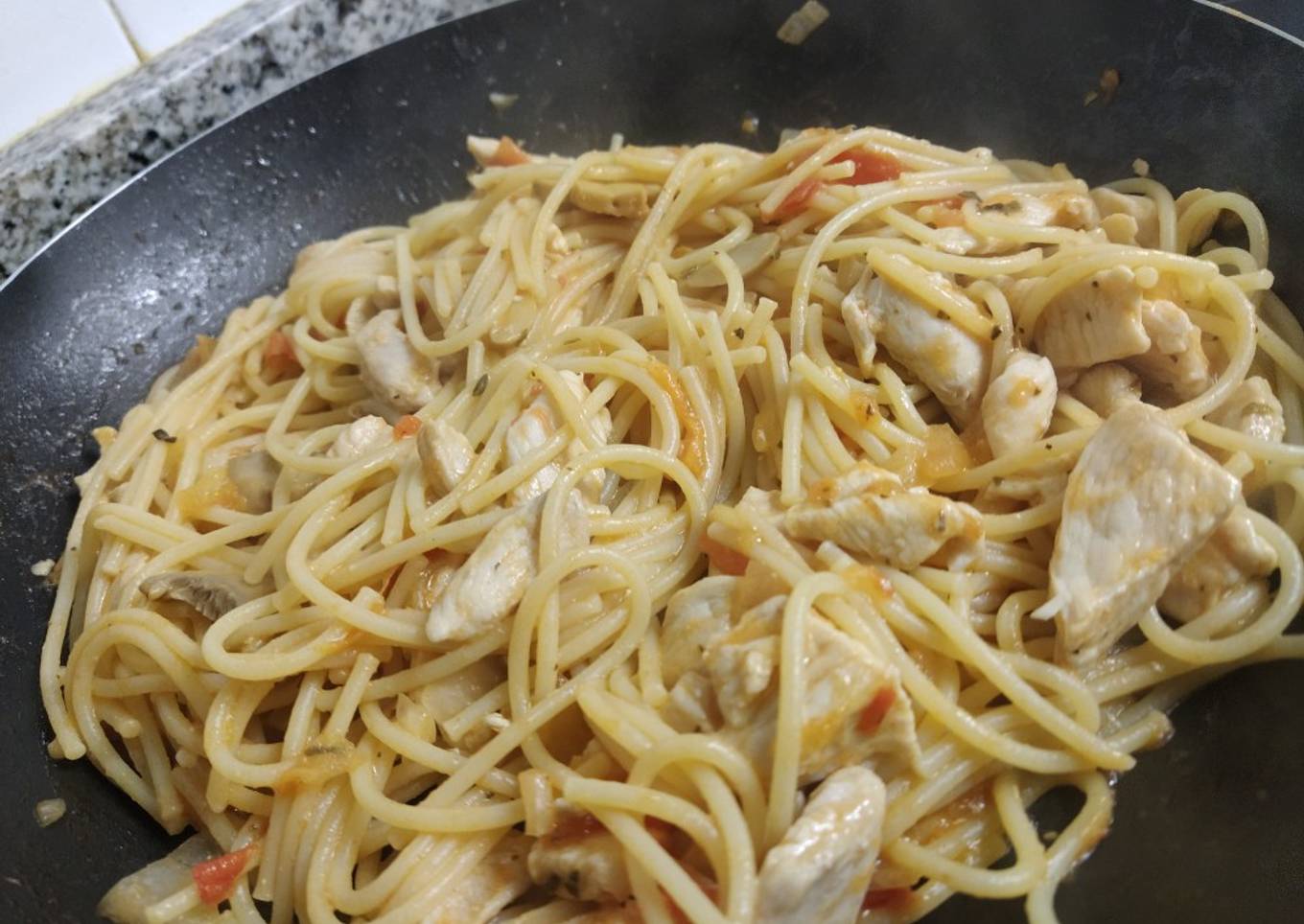 Hey everyone, it is John, welcome to our recipe page. Today, I will show you a way to prepare a special dish, 🍝 Spaghetti con pollo y champiñones. It is one of my favorites food recipes. For mine, I'm gonna make it a little bit tasty. This is gonna smell and look delicious.