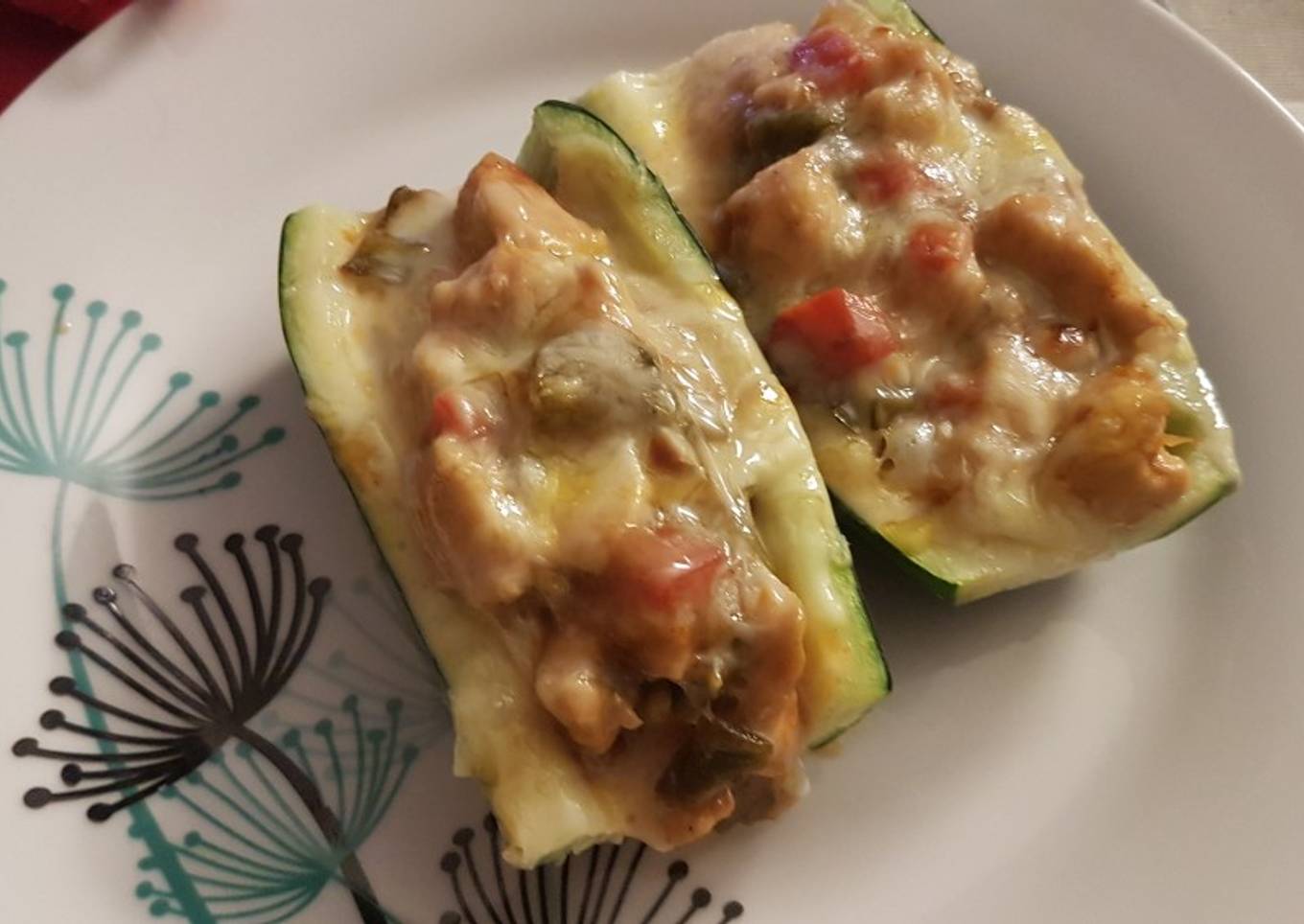 Calabacines rellenos de pollo a la barbacoa y miel🍯