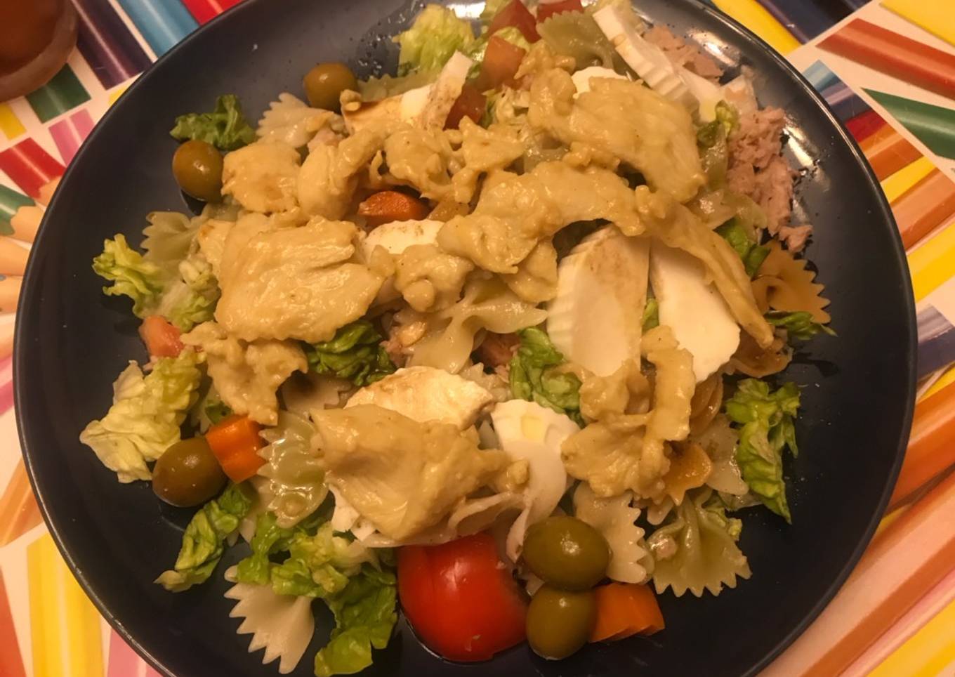 Ensalada especial, con pollo a la salsa de miel con mostaza