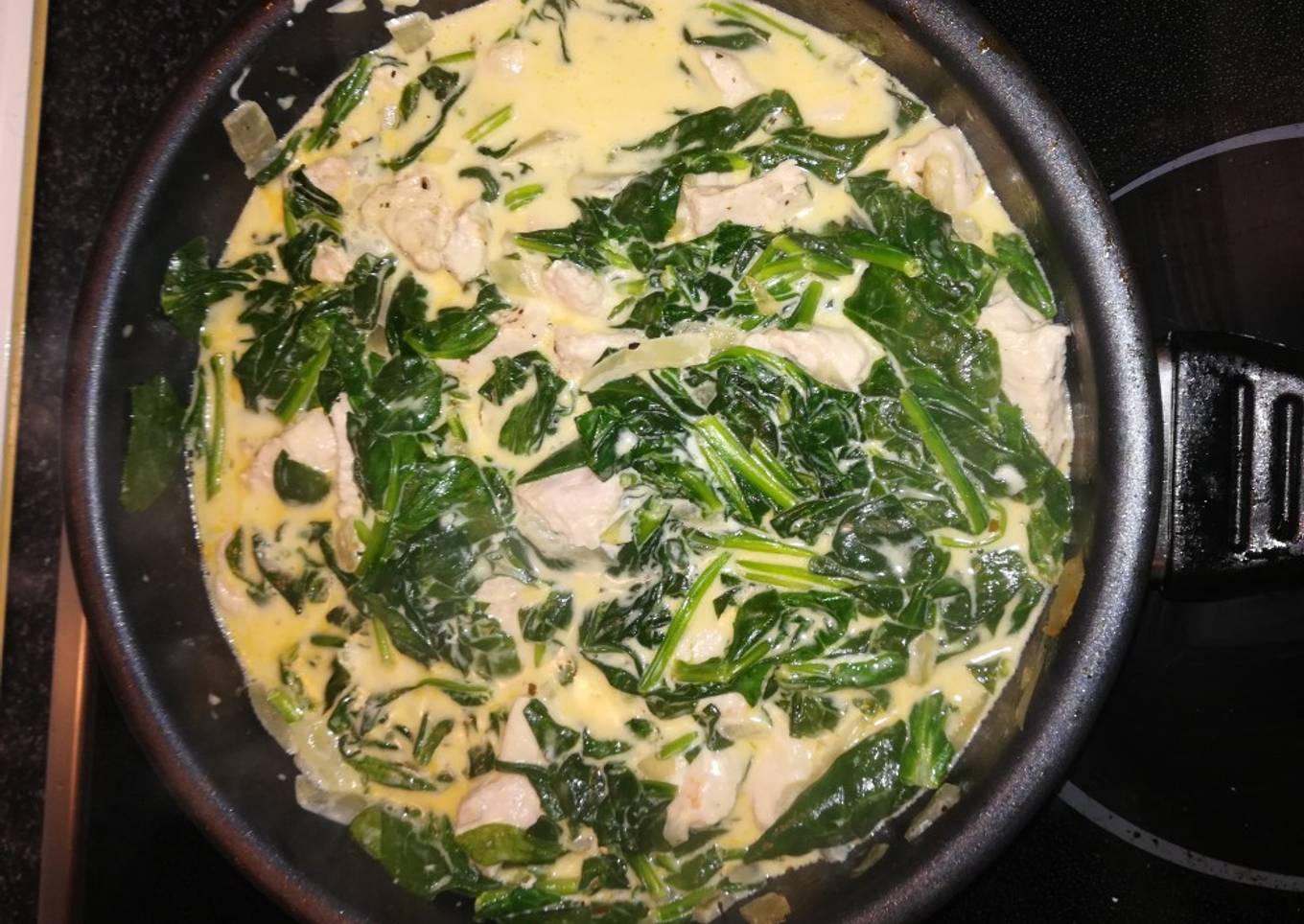 Espinacas con pollo y nata