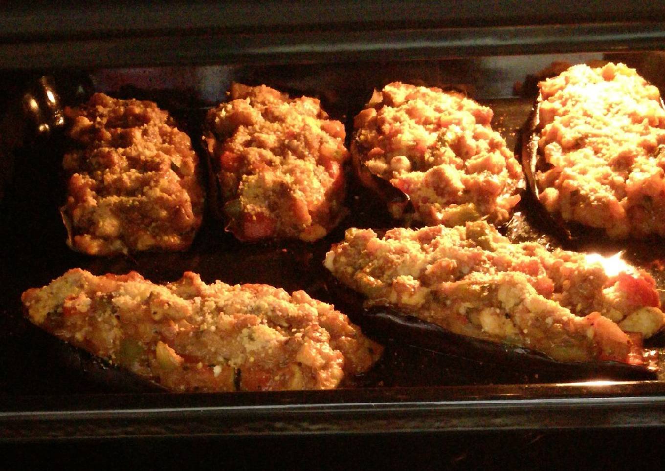 - Una vez hecho el frito rellenamos las berenjenas con el frito y volvemos a meterlas al horno a 180°C unos 10 minutos.