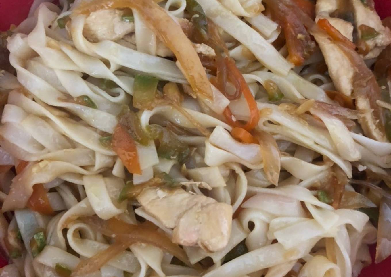 Noodles de arroz con pollo y verduritas. Fácil y rápido de hacer