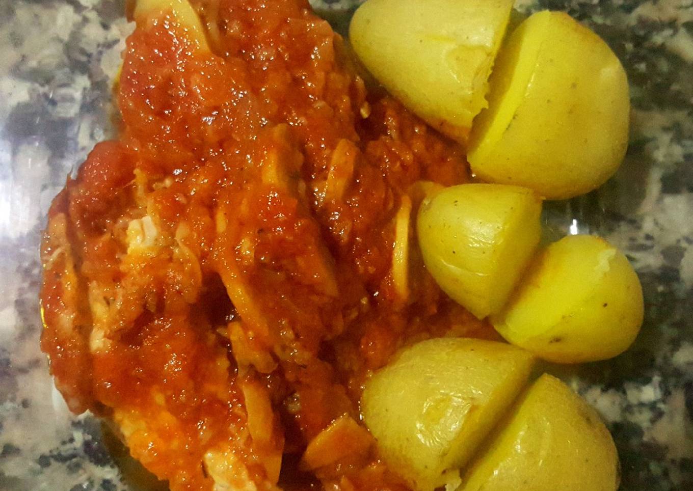 - Añadimos las pechugas que teníamos reservadas de manera que queden cubiertas por el tomate y dejamos cocinar a fuego bajo durante 25 min.