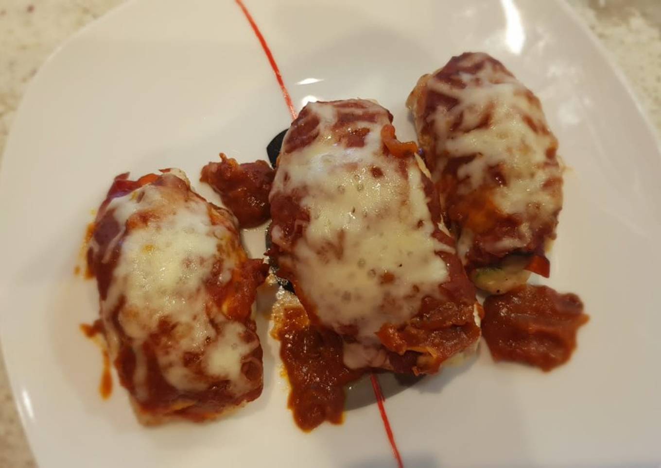 - Horneamos durante 15 minutos, os recomiendo echadle un vistazo de vez en cuando para que no se tueste el queso, queremos que se funda. Transcurrido el tiempo, sacamos los rollitos del horno y emplatamos. Buen provecho.