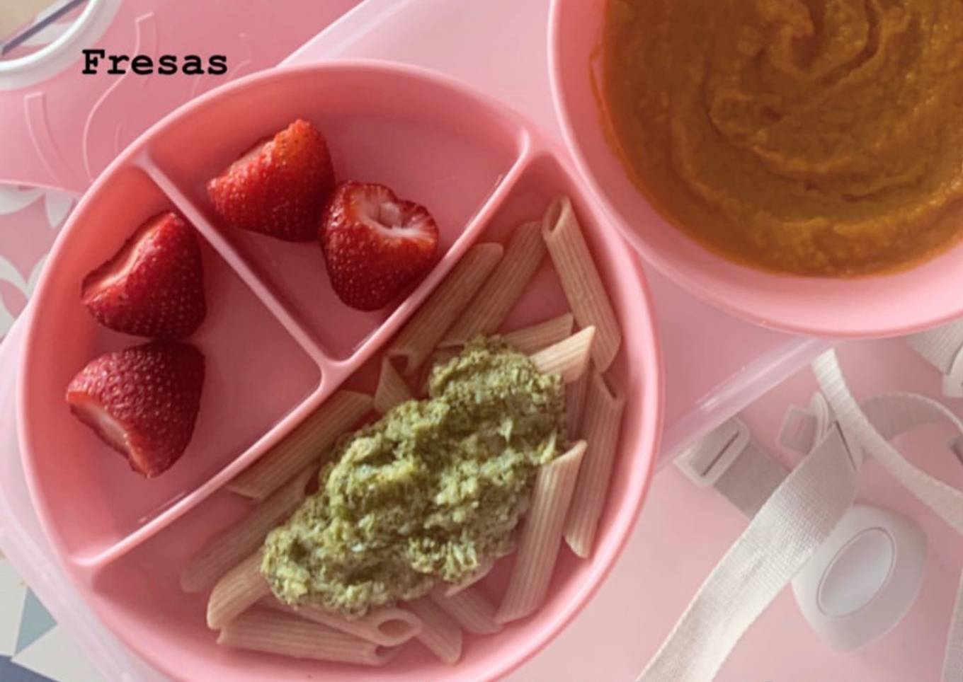 BLW Ideas (crema de pollo con verduritas y macarrones integrales con pesto de brócoli)
