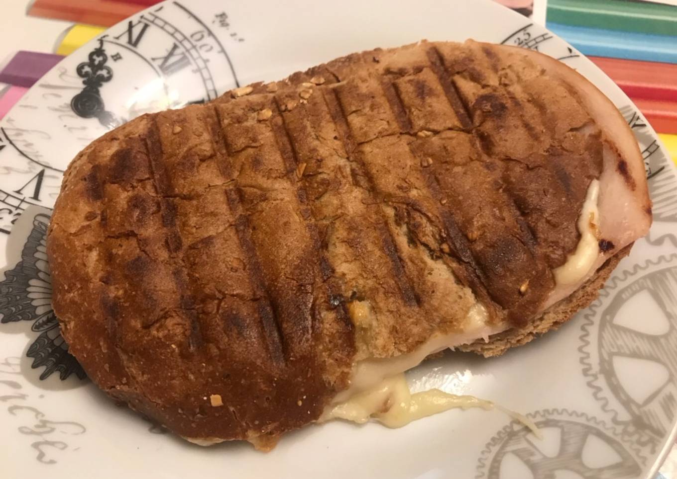 - Untamos una rebanada de pan con aceite, ponemos las rodajas de pechuga de pollo braseadas, añadimos el queso por encima y colocamos por último la otra rebanada de pan, cerramos y tostamos y listo
