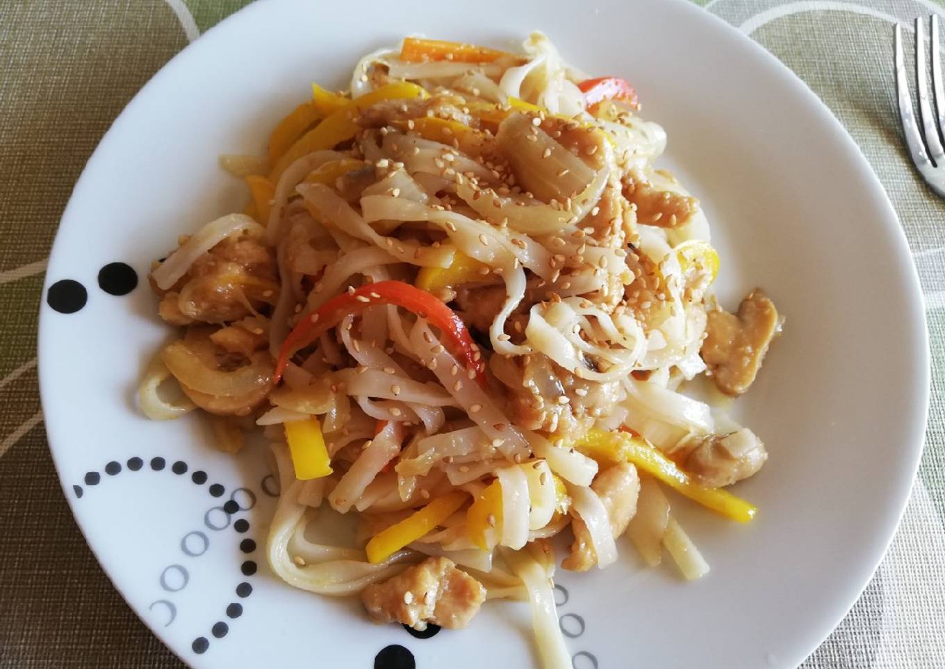 Hey everyone, hope you're having an incredible day today. Today, I'm gonna show you how to make a distinctive dish, Pasta de arroz con verduras y pollo. One of my favorites. This time, I am going to make it a little bit tasty. This is gonna smell and look delicious.