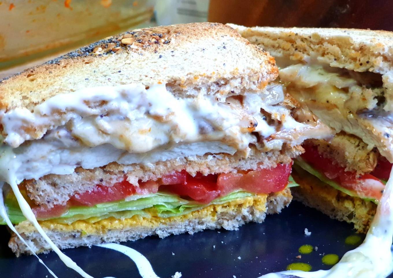 En verano los peques quieren estar en la piscina hasta últimahora y llegan agotados y muertos de hambre, este sándwich es ideal para preparar mientras se dan una ducha y se ponen el pijama...no te lo pierdas, puedes cambiar las salsas por las que a ellos más les guste, dedico esta receta a mi compi en las batallas de cocina #primerodecocina