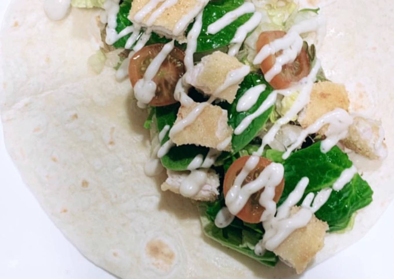 - Colocamos la tortilla de trigo en un plato. Encima ponemos la lechuga iceberg y las espinacas.