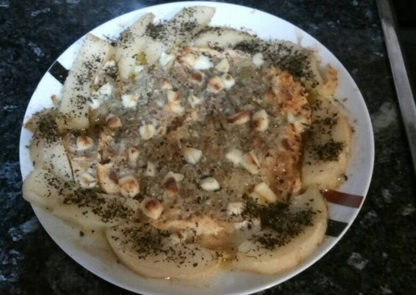 - Trocear la cebolla cocida, colocarla sobre la carne, espolvorear perejil, pimienta negra y sal