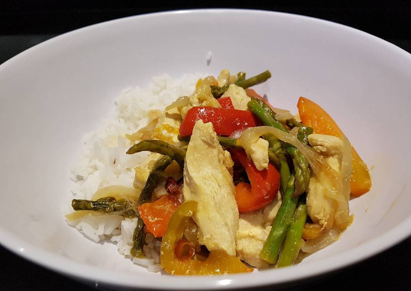 Ayer hice pollo al wok con verduras y nísperos y salió estupendo. Si no tienes nísperos, recomiendo sustituir con albaricoques o un melocotón.