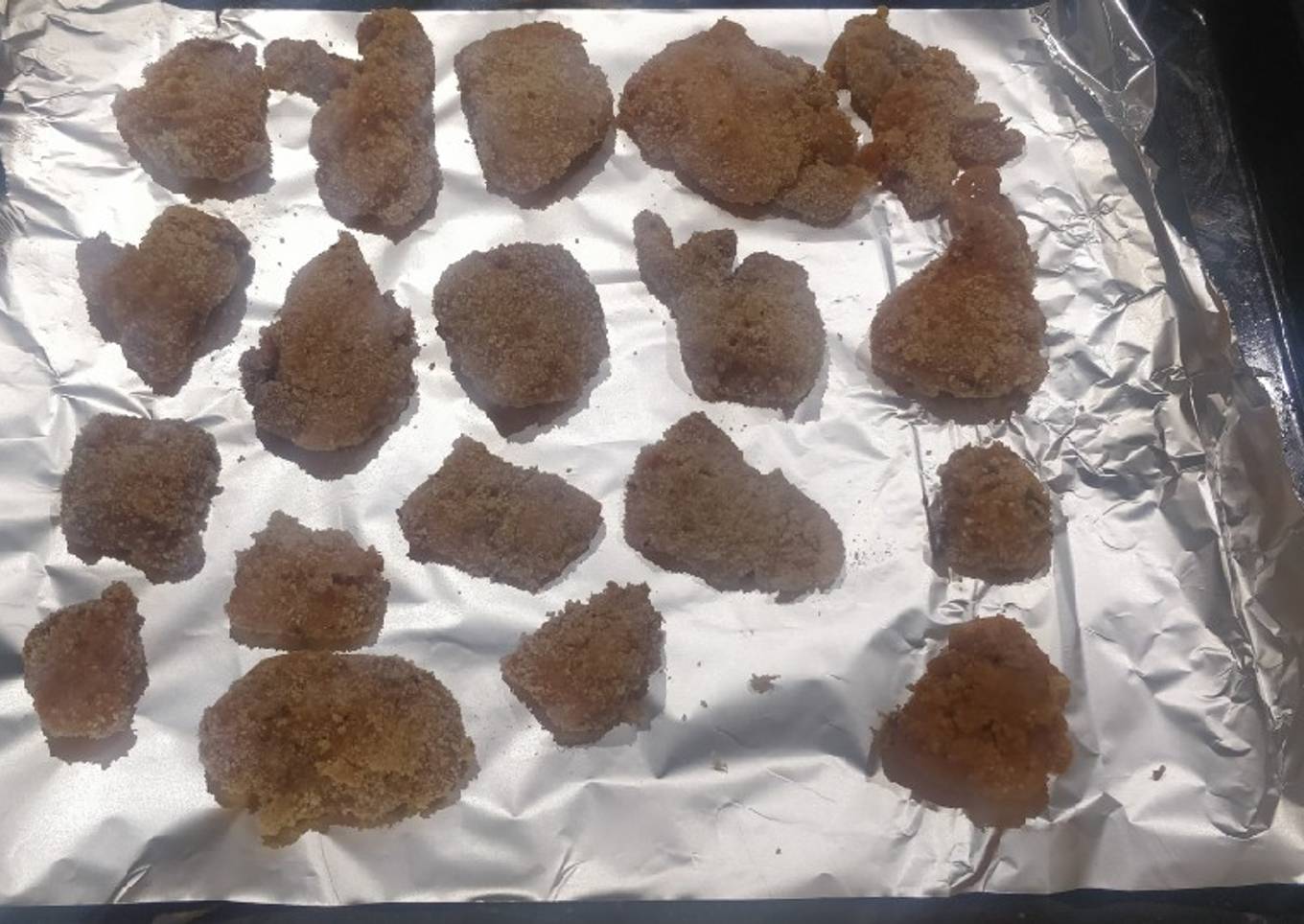 - Vamos pasando por pan rallado todos los trocitos de pollo