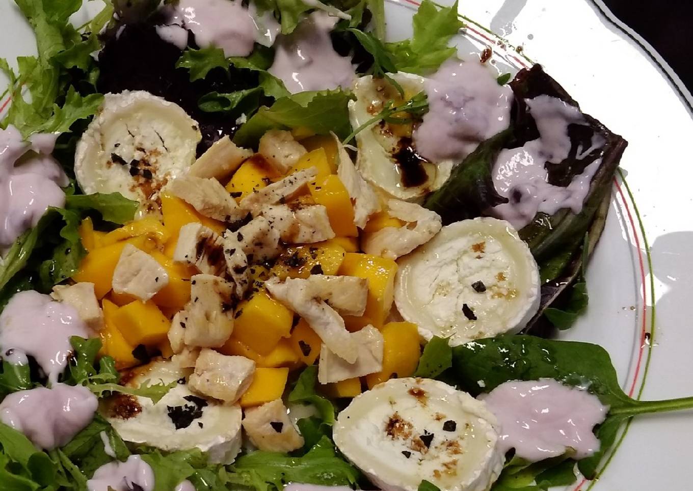 Ensalada de pollo con mango y queso de cabra
