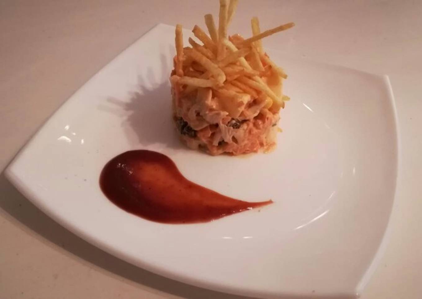 - Salpimentar y por encima echar la patata paja....buen provecho