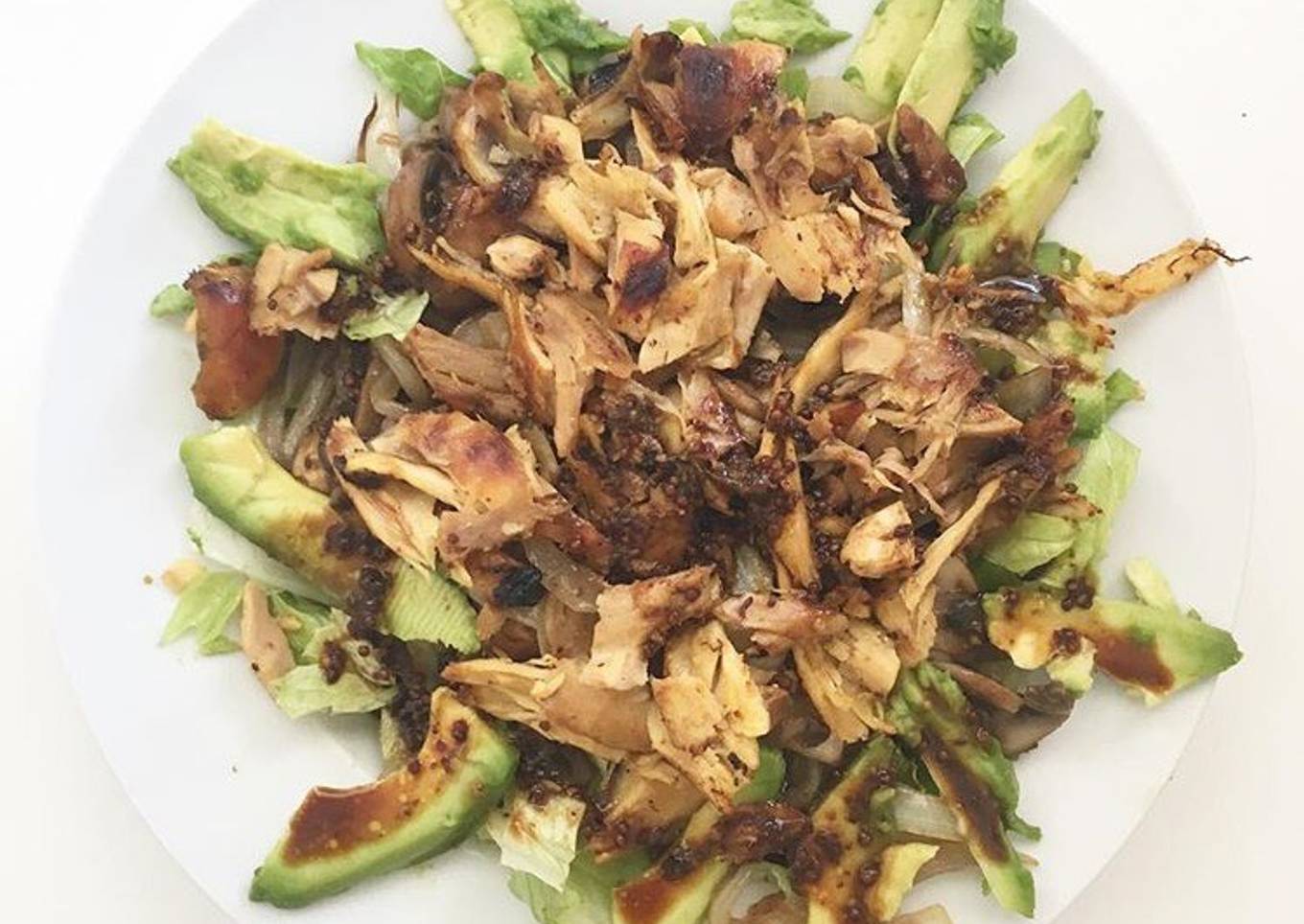 - Colocar los champiñones sobre la lechuga y encima el pollo.