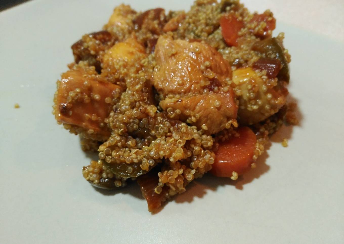 - Cuando estén las verduras hechas agregar el pollo salteado y la quinoa, y dejar la fuego un par de minutos más.
