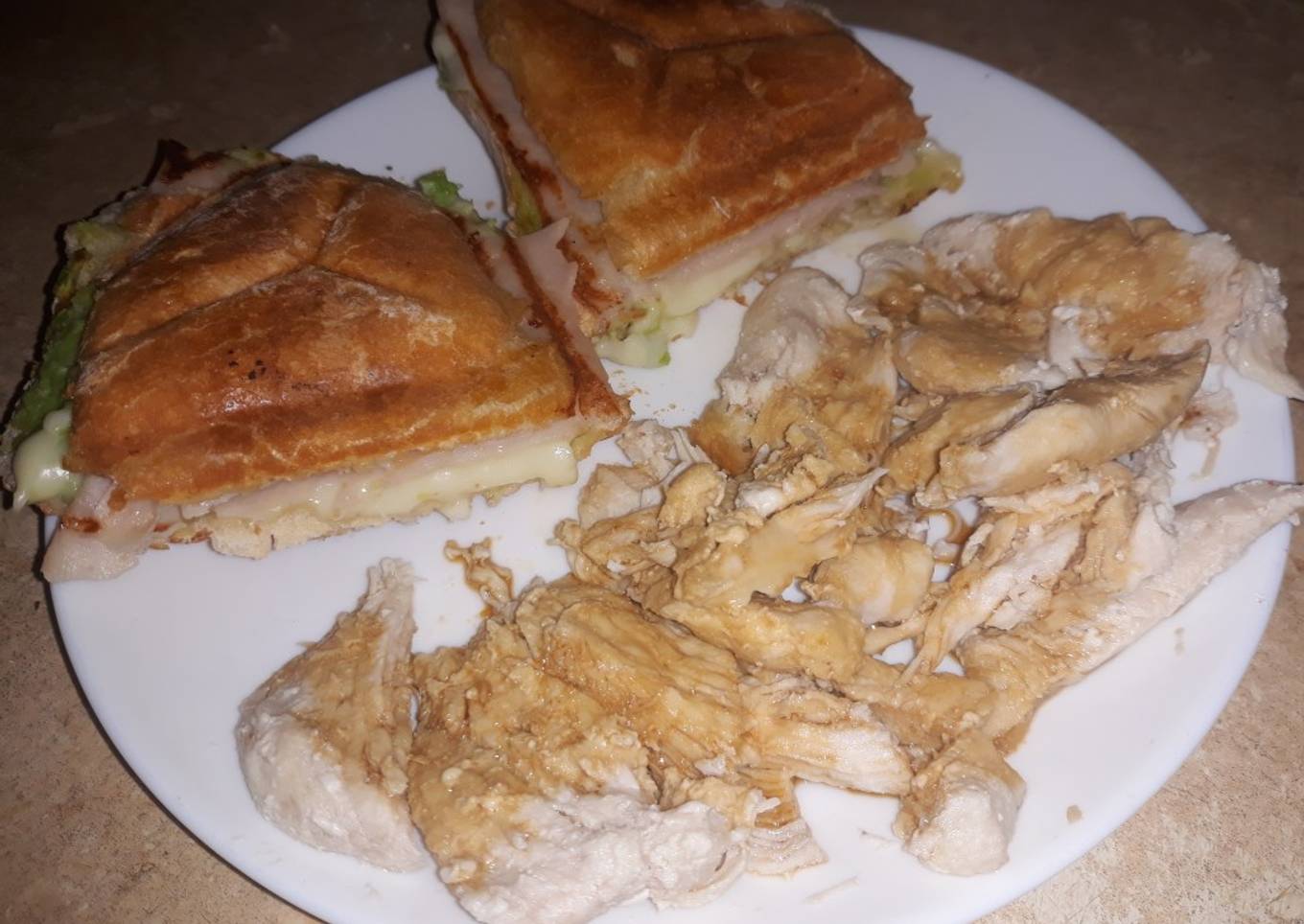 - Luego prepar茅 el bocadillo, con pan de masa madre que compr茅 anteriormente ya echo, le unt茅 medio aguacate, le puse el queso y el pavo y el otro pan le puse aceite de oliva y a tostar.