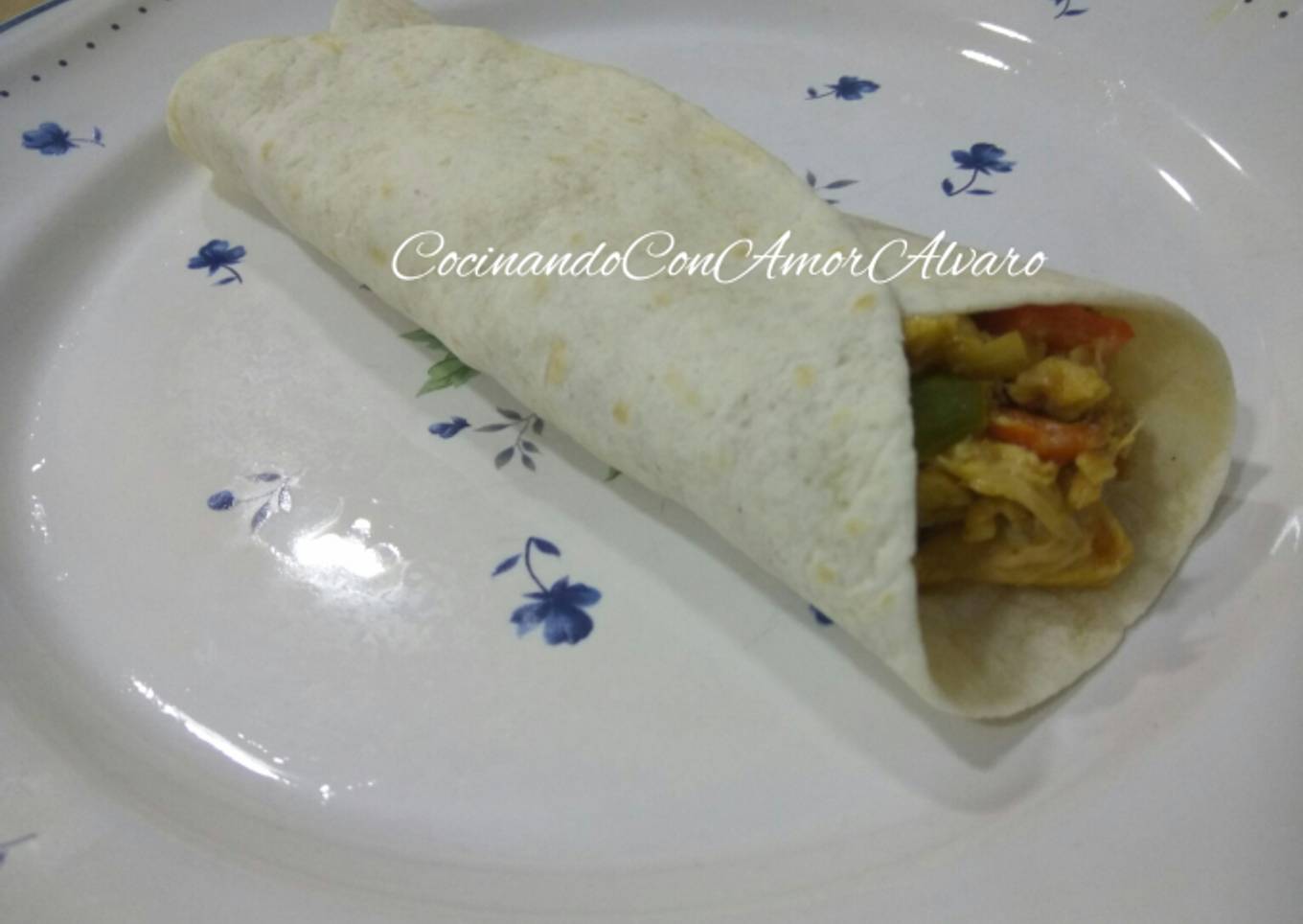 - Agregamos el condimento mexicano, y echamos los tranchetes, envolvemos todo bien hasta que esté derretido. Volvamos el Relleno de fajitas en una fuente, y es el momento de rellenarlas. Yo las caliento en el microondas durante 20 segundos, por unidad. Una vez lista la fajita la rellenamos haciendola un rulo. Y listas para comer.