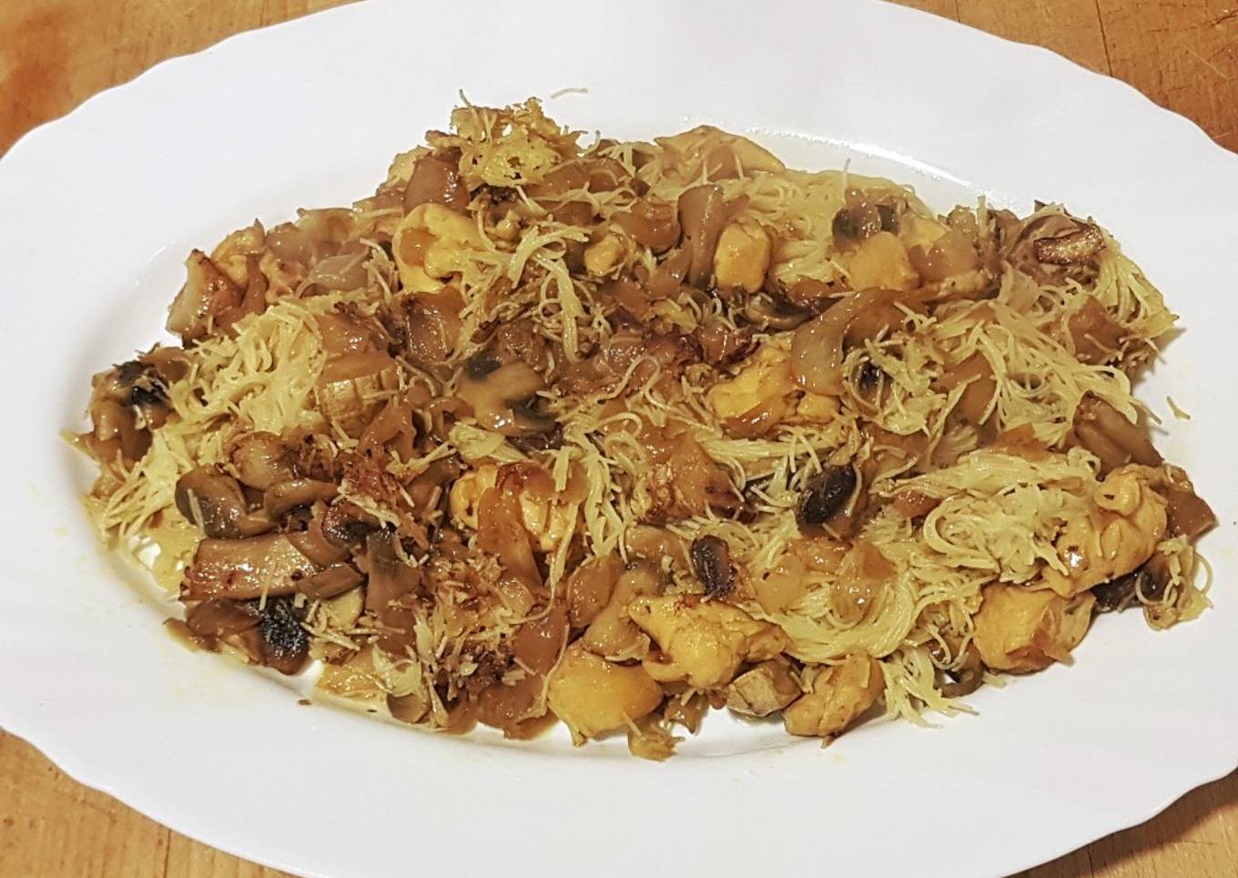 NoodlesThai Stile de Pollo y Champiñones con Jengibre y Cúrcuma