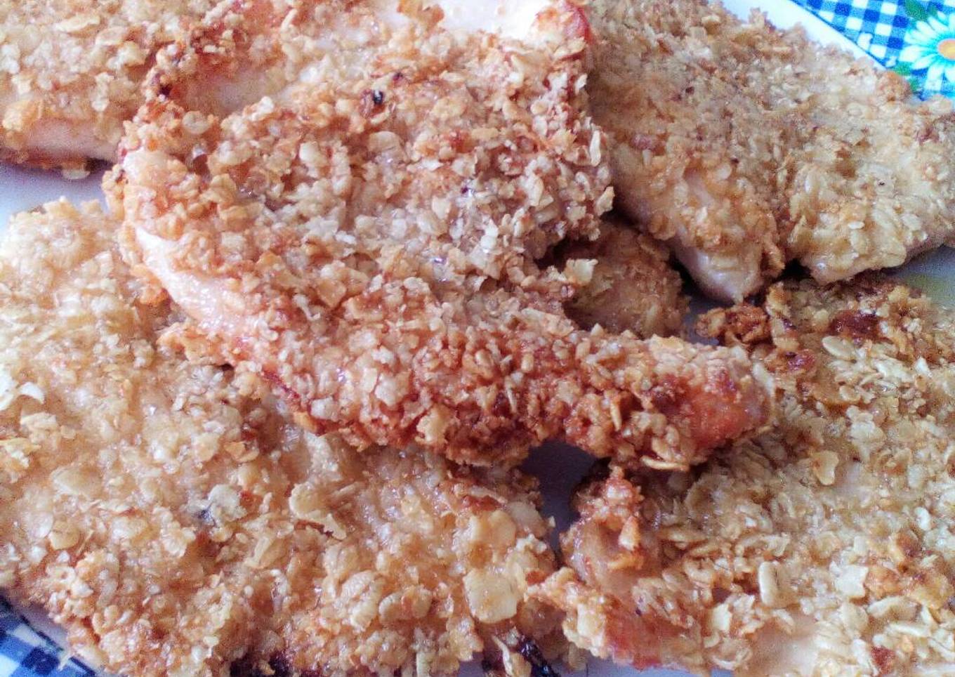 Pollo al limón rebozado en avena