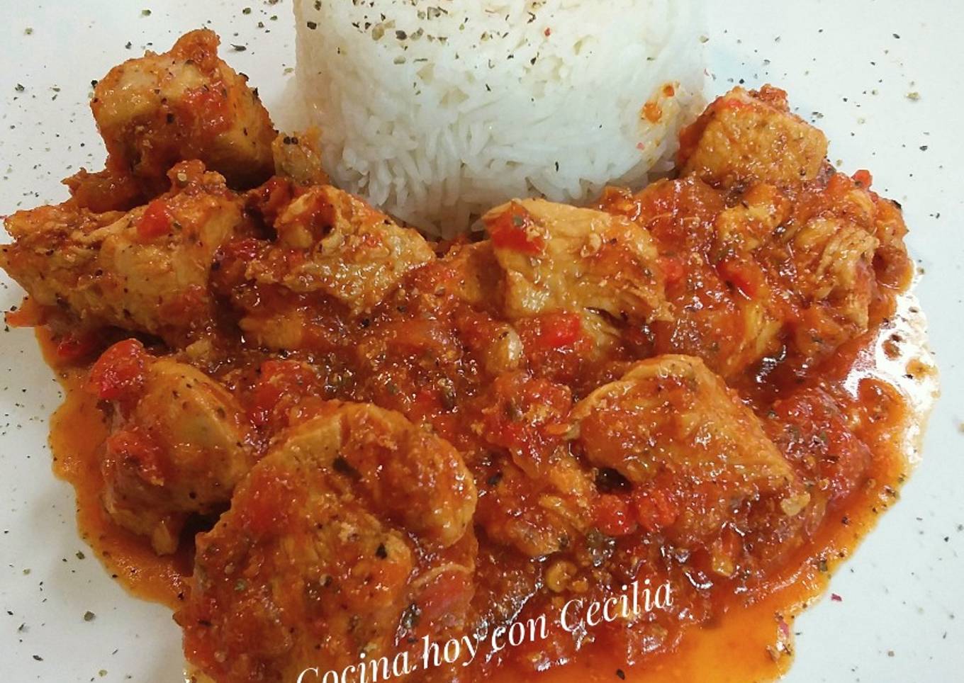 - Mientras se sofríen las verduras, trocear las pechugas de pollo en cubos.