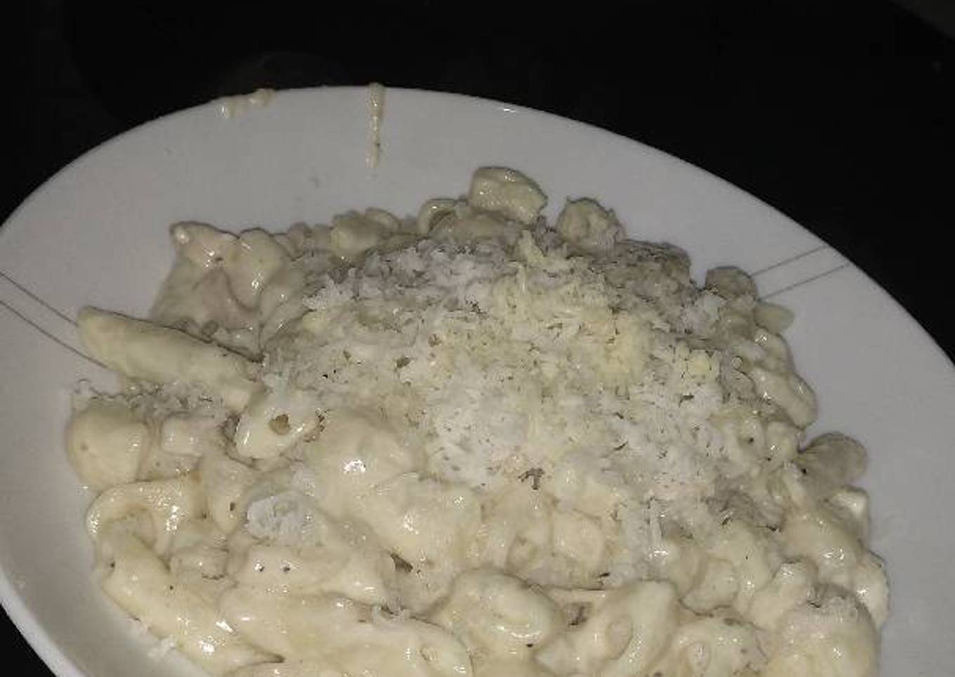 - Saltear pollo en otra sartén y añadir a l pasta con queso