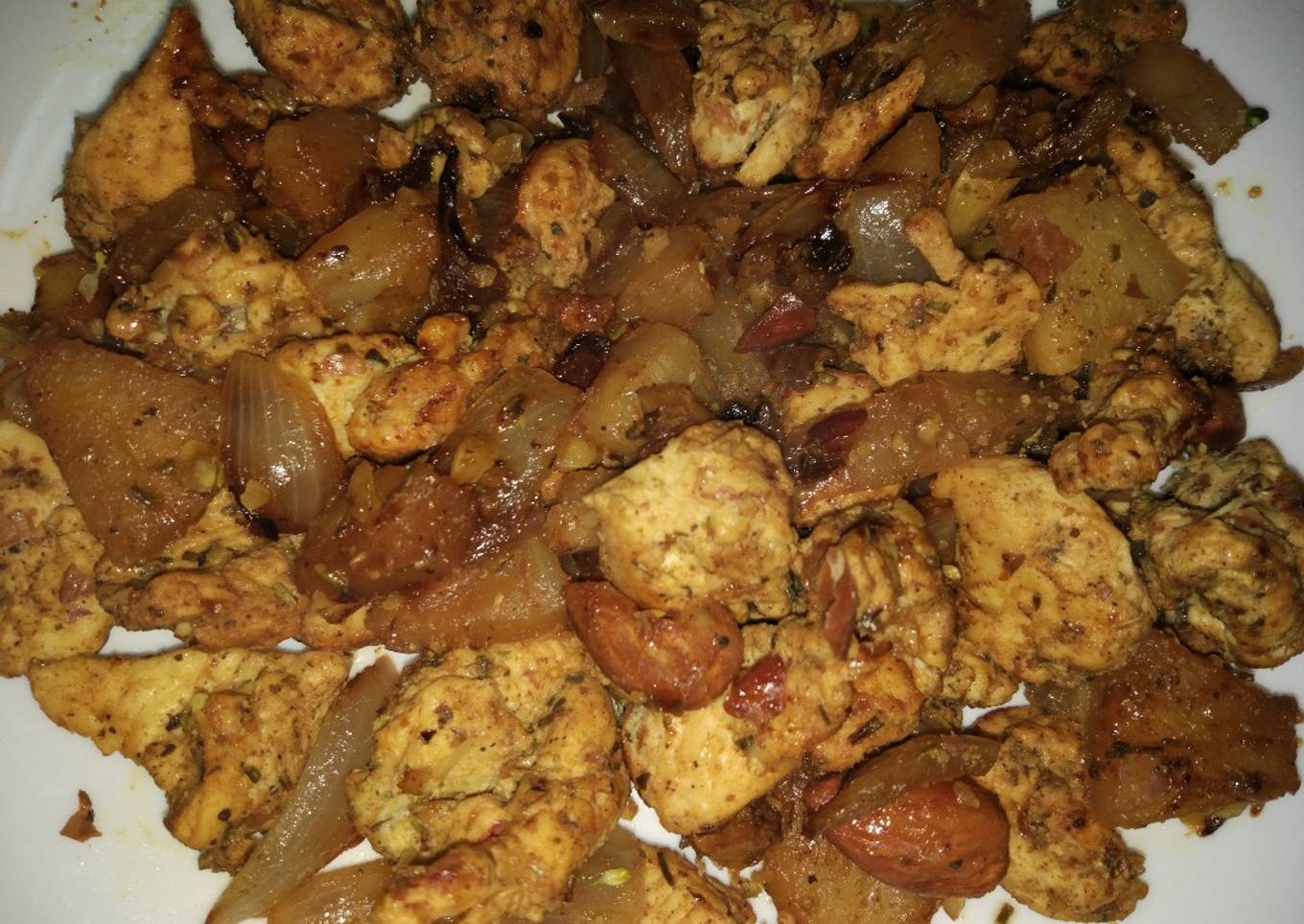 Pollo al curry con piña y almendras