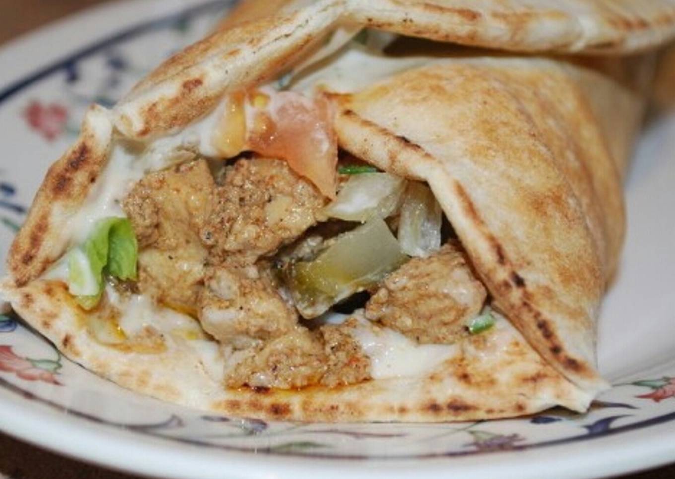 - Calentar en el tostador el pan de pita abrir y rellenar con la lechuga el tomate, la cebolla, el pollo y los ingredientes de la salsa mezclados y ya puede servir